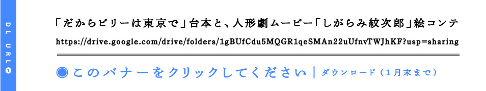 ★1/8-13 新春お年玉企画★お年玉プレゼント付き!! ・「だからビリーは東京で」台本 ・しがらみ紋次郎 本編映像 ・しがらみ紋次郎 蓬莱竜太直筆絵コンテ