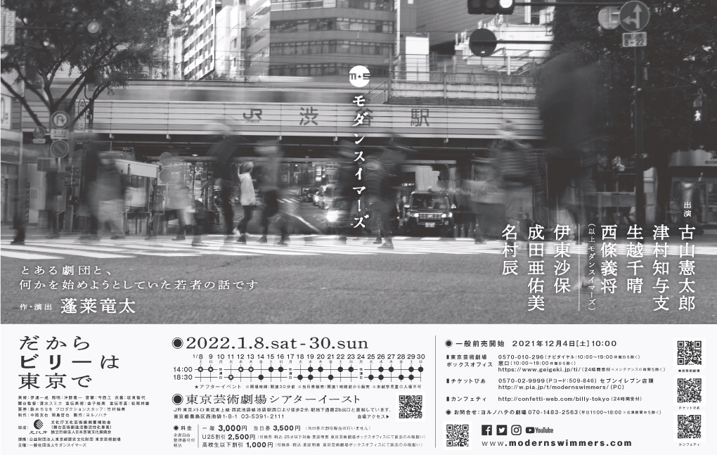 お詫び 「だからビリーは東京で」初日の2022年1月8日(土)14時公演でお配りいたしました「お年玉」URLにおいて不具合が生じましたこと、深くお詫び申し上げます。新春早々、ご不快な思いをさせてしまい、大変申し訳ありませんでした。下記のアドレスに各データをアップロードしなおしました。お手数ですが下記のアドレスにアクセスしてください。パスワードはお配りしたものと同一になっております。1月末をもちましてリンクを解除いたします。ダウンロードしてお楽しみください。 モダンスイマーズ 制作 岡島哲也 . ◉ダウンロードURL1|こちらをクリックしてください