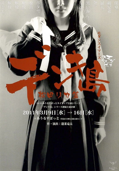 度肝を抜かれた。モダンスイマーズや蓬莱竜太の作風の特色を表すのに最も多く使われる形容詞は「骨太な」だが、この頃すでにそれは充分な強度を持っていた。当時は──今もその傾向は残っているが──、家族や友達という極めて小さな関係性の中だけで物語を完結させる若手劇団の傾向が問題視されていて、批判される側は「自分が本当にリアリティを感じられる範囲で話を書くのは、つくり手としてのひとつの誠意」という考え方で作品をつくっている状況だった。そんな中で『デンキ島』は、社会的にも家庭内でもどうしようもない父親と、近過ぎる距離感で人間を縛る地方の共同体の呪縛から何とか抜け出して、自分の人生を切り拓いて生きようとする女子高生の孤独な戦いという、リアリティの要素はほとんどないストーリーだった。けれど、それに臆する空気は微塵もなく、むしろ、ドラマの骨格をしっかりつくり、物語をきちんと届けることが演劇の役割だと確信しているようだった。「次から次へと、そんなに絵に描いたような不幸は……」という観客のツッコミを早々に封じる迫力と筋力が、もうそこにあったのだ。