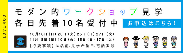 そこで、モダン的ワークショップの見学枠を各日先着10名まで設ける事となりました。是非ご参加ください。